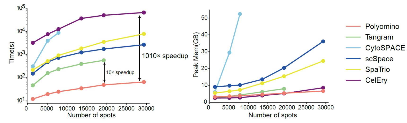 Polyomino通過多層區(qū)域約束實(shí)現(xiàn)單細(xì)胞空間定位,顯著提高了計算效率