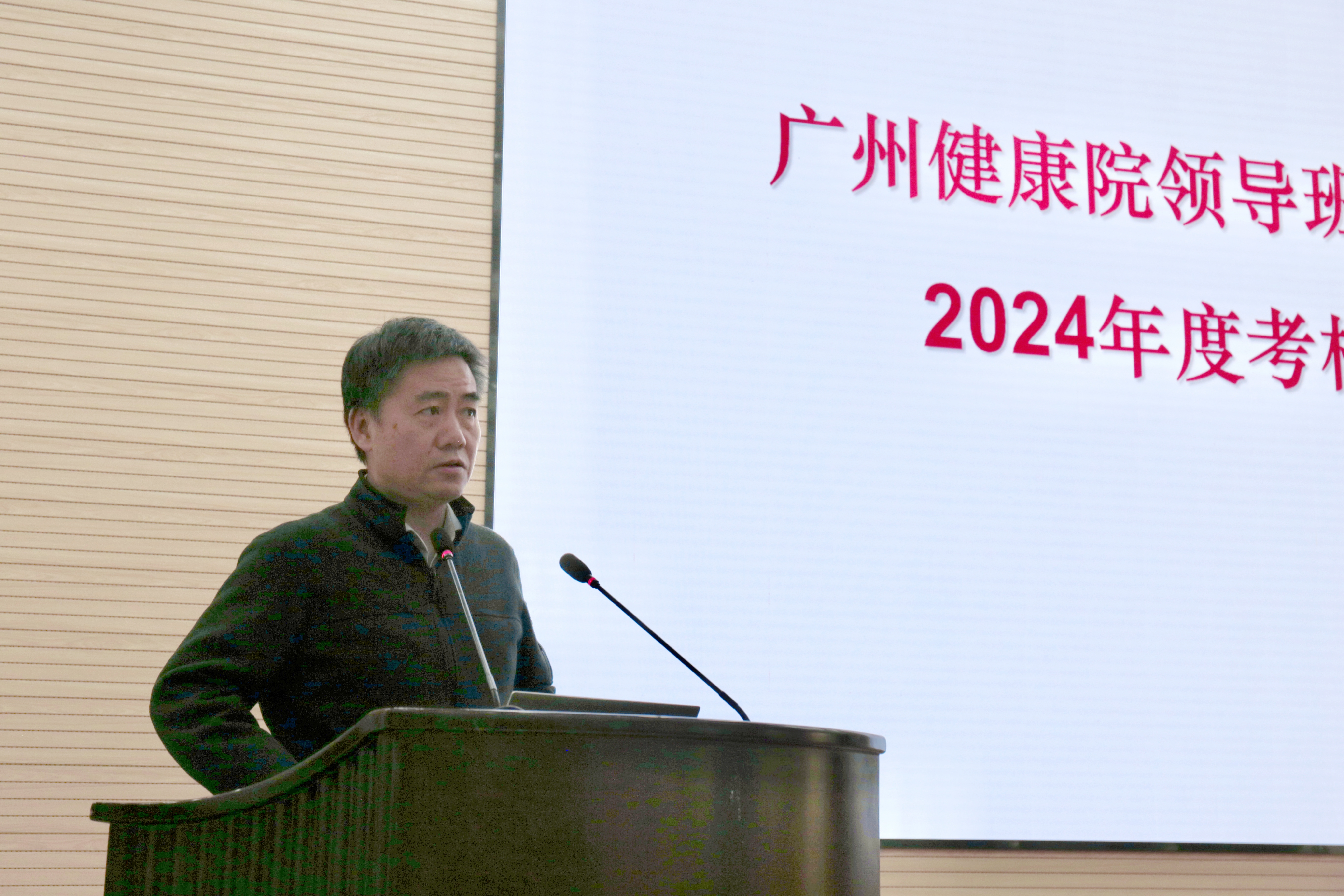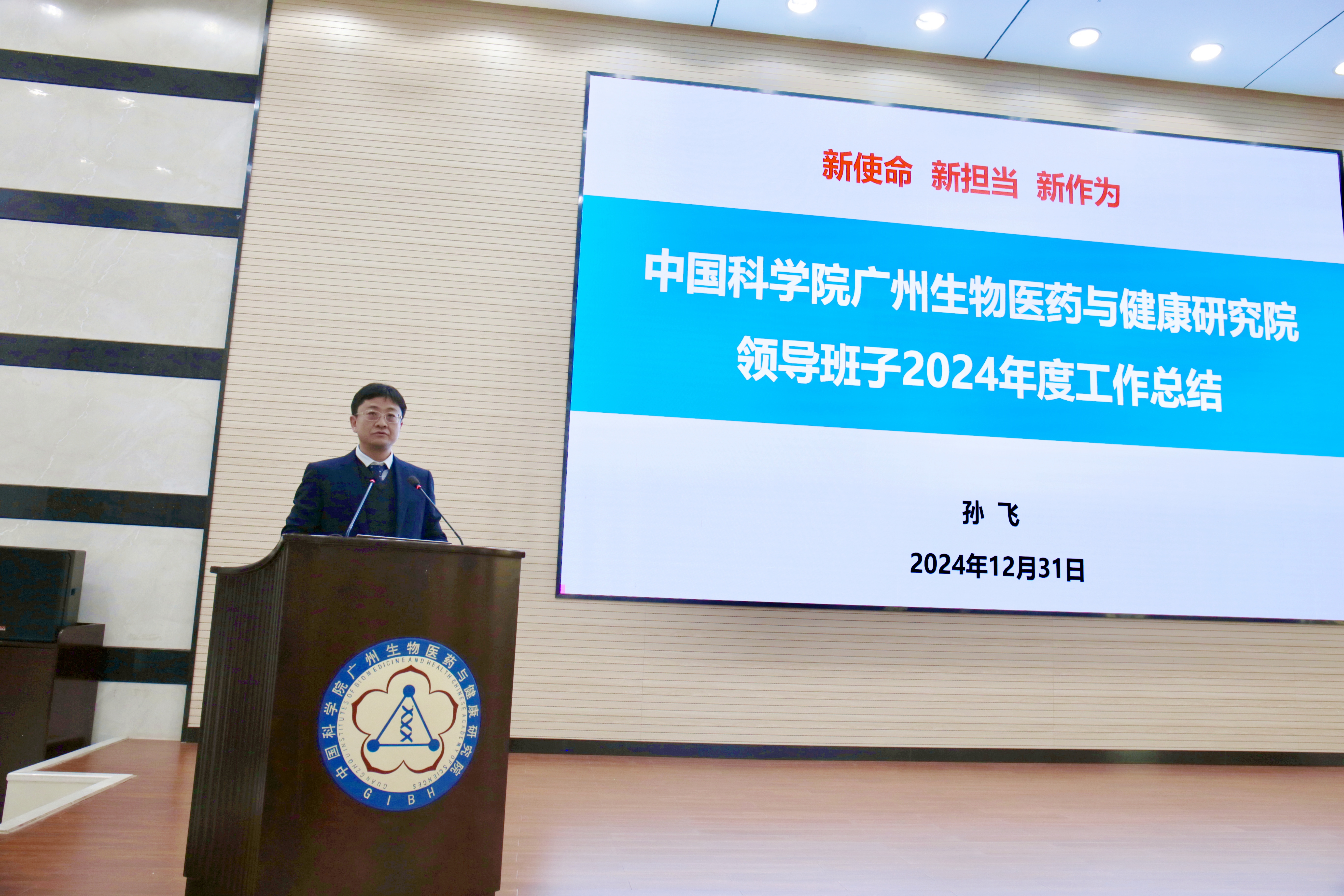 陳廣浩首先介紹了考核評(píng)議的要求和相關(guān)注意事項(xiàng)。隨后,孫飛副院長(zhǎng)(主持工作)代表廣州健康院領(lǐng)導(dǎo)班子作年度工作總結(jié)報(bào)告。孫飛從“強(qiáng)化全面從嚴(yán)治黨,以高質(zhì)量黨建引領(lǐng)高水平科技創(chuàng)新”“進(jìn)一步全面深化改革創(chuàng)新,提升研究院治理能力”“爭(zhēng)取重大科技任務(wù),保障創(chuàng)新成果產(chǎn)出”“匯聚優(yōu)勢(shì)力量,加快建設(shè)細(xì)胞譜系設(shè)施”“促進(jìn)科教融合,切實(shí)提升研究生培養(yǎng)質(zhì)量”“務(wù)實(shí)開(kāi)展交流合作,有效增強(qiáng)研究院國(guó)際影響力”等6個(gè)方面全面回顧了研究院2024年取得的成績(jī),分析了存在的問(wèn)題與不足,并對(duì)研究院2025年度重點(diǎn)工作進(jìn)行了部署。