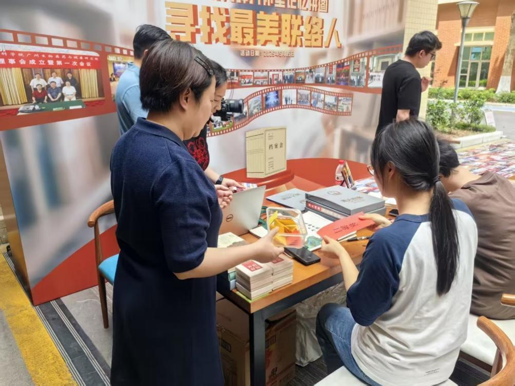 活動現場,以電影膠片元素為主題的背景板前,錯落有致地展示著廣州健康院珍貴的歷史照片,吸引了眾多職工學生駐足。他們或是仔細翻閱照片檔案,在歷史與現實的交織中感受我院的變遷;或是積極分享自己參與研究院建設發(fā)展的故事。