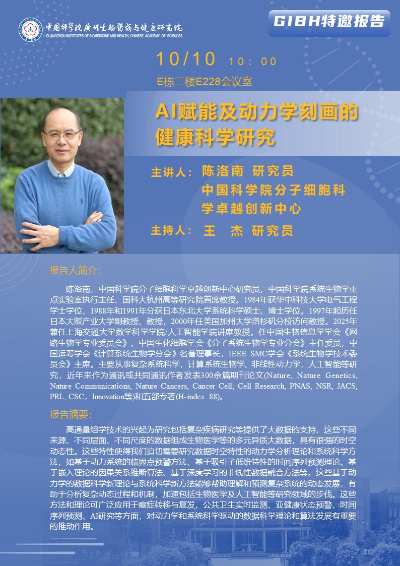 2025年10月10日特邀報(bào)告:AI賦能及動(dòng)力學(xué)刻畫的健康科學(xué)研究