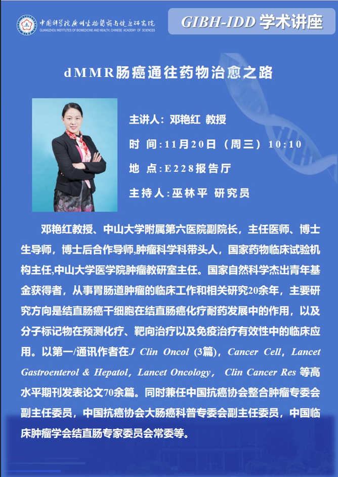 2024年11月20日GIBH-IDD學(xué)術(shù)講座:dMMR腸癌通往藥物治愈之路