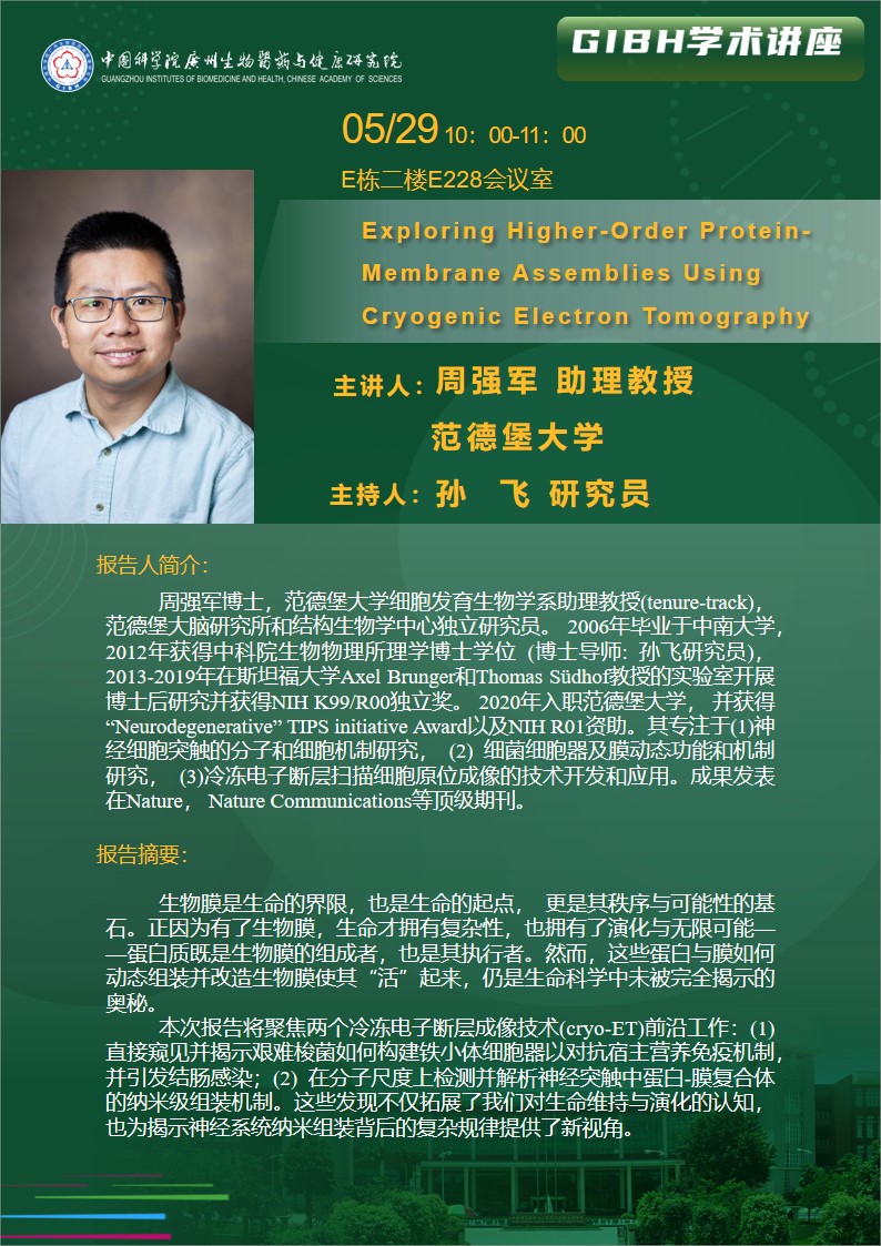 2025年5月29日學術講座:Exploring Higher-Order Protein-Membrane Assemblies Using Cryogenic Electron Tomography