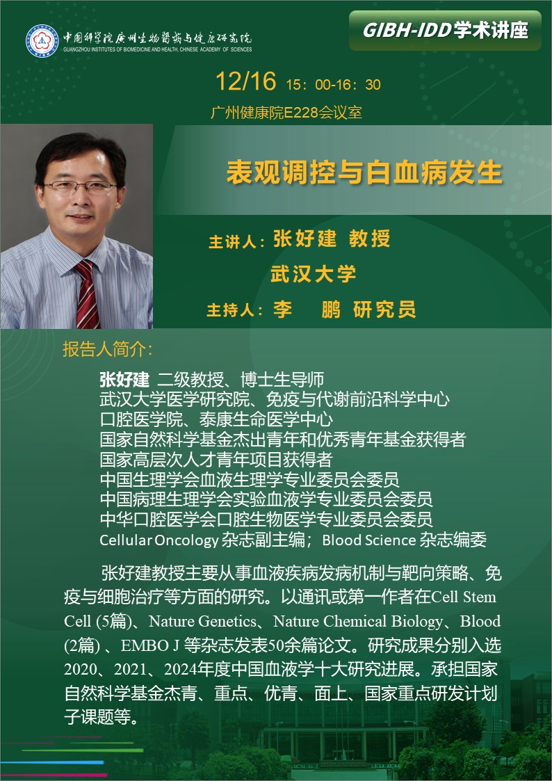 2025年12月16日學(xué)術(shù)講座:表觀調(diào)控與白血病發(fā)生